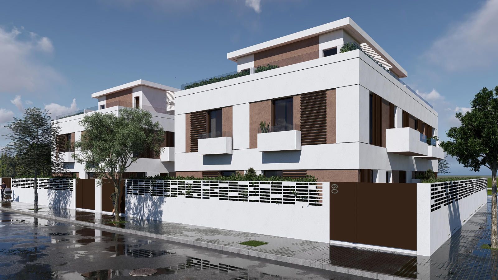 VILLAS DEL FERROCARRIL es una exclusiva promoción de 8 viviendas pareadas ubicadas en un entorno privilegiado de CORRALES, calle Ribera del Odiel con calle Lazareto, Nuevo Corrales, Aljaraque.