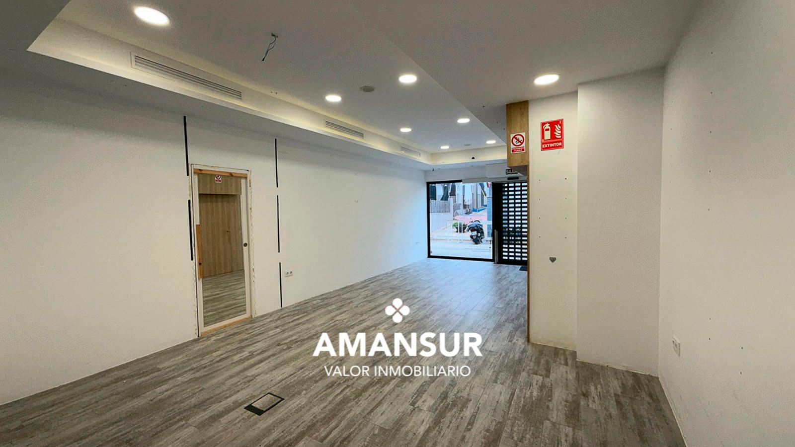 Amansur alquila local comercial. Cuenta con 85 m² construidos, completamente diáfano, lo que permite una gran versatilidad en la distribución del espacio. Dispone de amplia cristalera a la calle, aportando excelente visibilidad y luminosidad natural, perfecta para escaparate comercial.